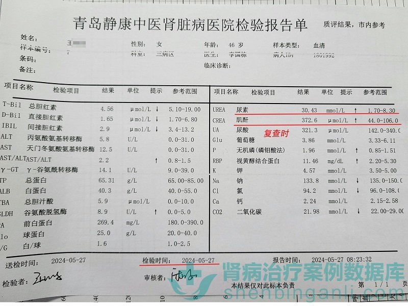 - 在青島未透析降下肌酐,尿毒癥患